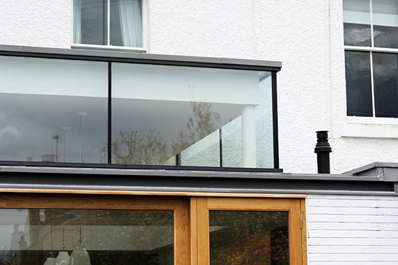 The extension is sandwiched by two existing extensions to neighbouring properties, so the geometry is left purposefully simple, relying on quality materials and detailing. The glazing is frameless and sits on a whitewashed brick elevation, with a large oak sliding door providing an important connection to the garden.