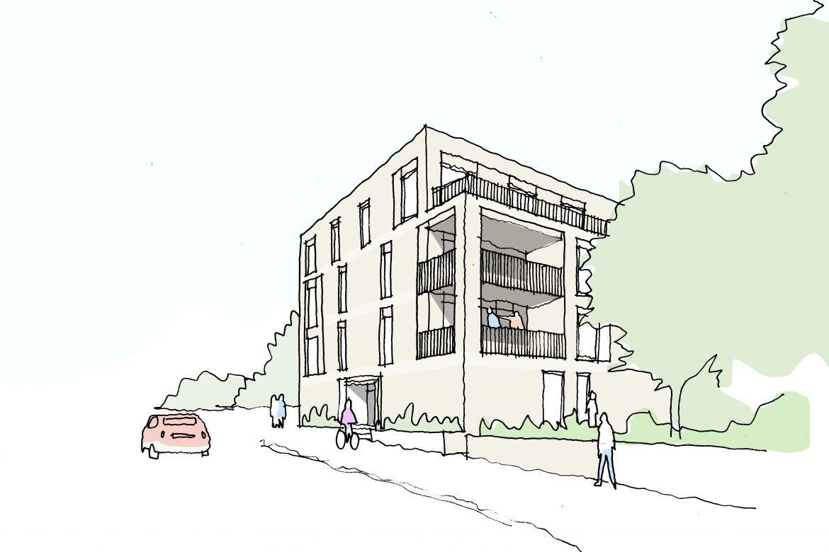 The four-storey building has been carefully massed and oriented to respond sensitively to its context.  Generous south-facing balconies provide high levels of natural daylight and passive solar gain, while overlooking a landscaped communal garden that enhances resident wellbeing and biodiversity value.